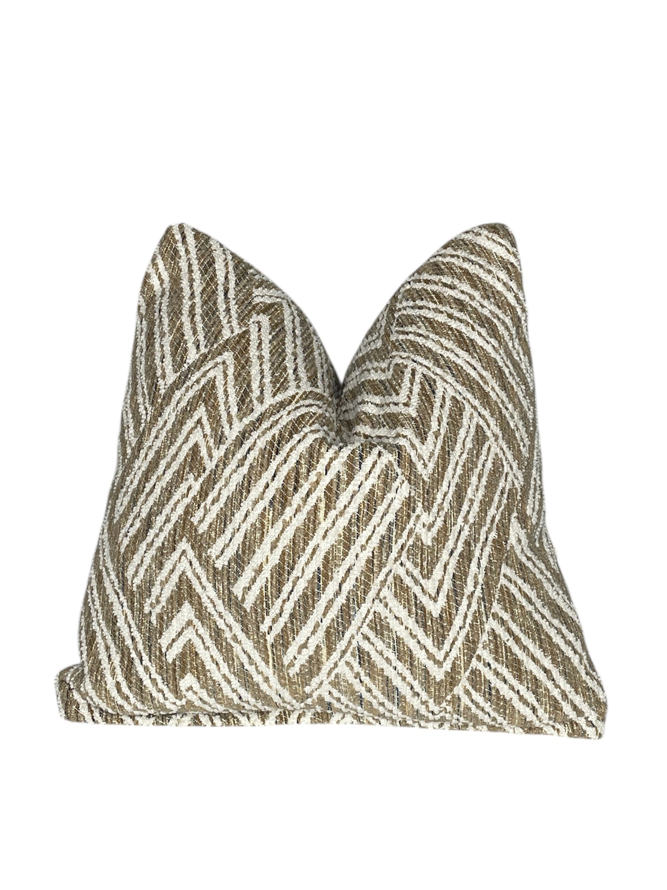 A patterned square pillow featuring a subtle diamond weave in soft neutral tones. Showroom-sourced and selected for its texture and graphic balance, this piece adds visual interest while remaining easy to layer with solids and other textured pillows.