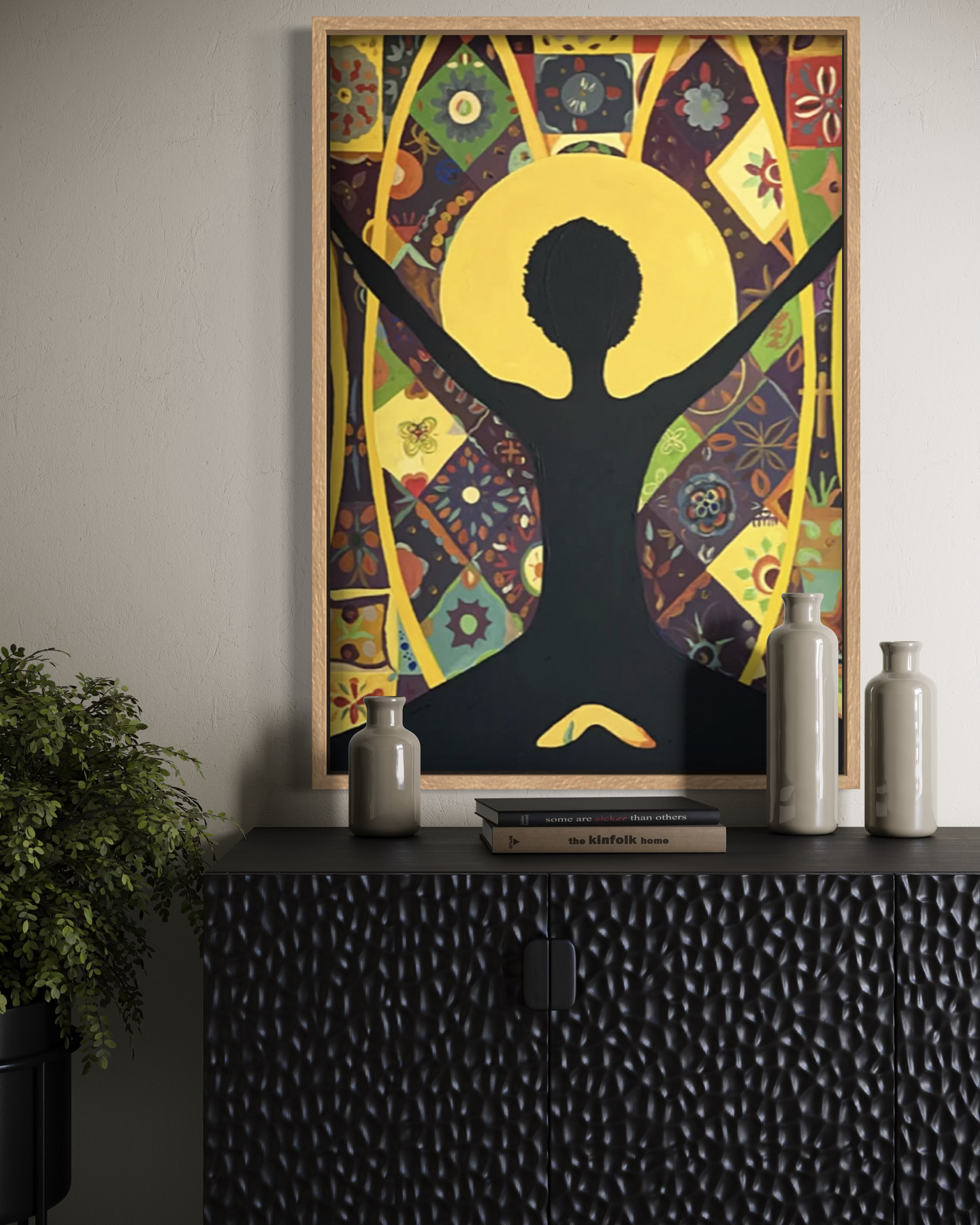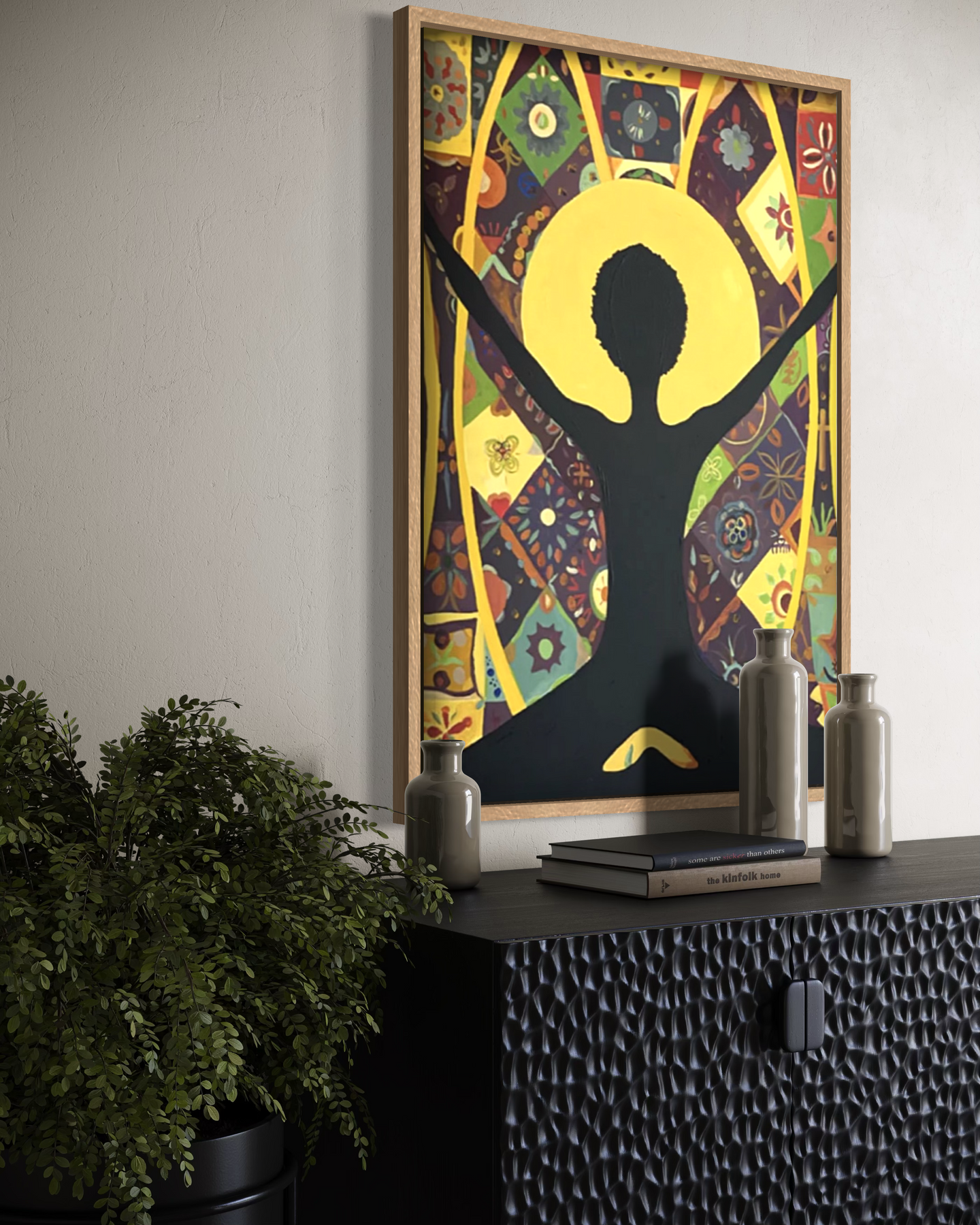 Executed in acrylic on a 30 x 40 inch canvas, this original embodies clarity and presence — honoring the scale of a woman’s inner and outer world.
